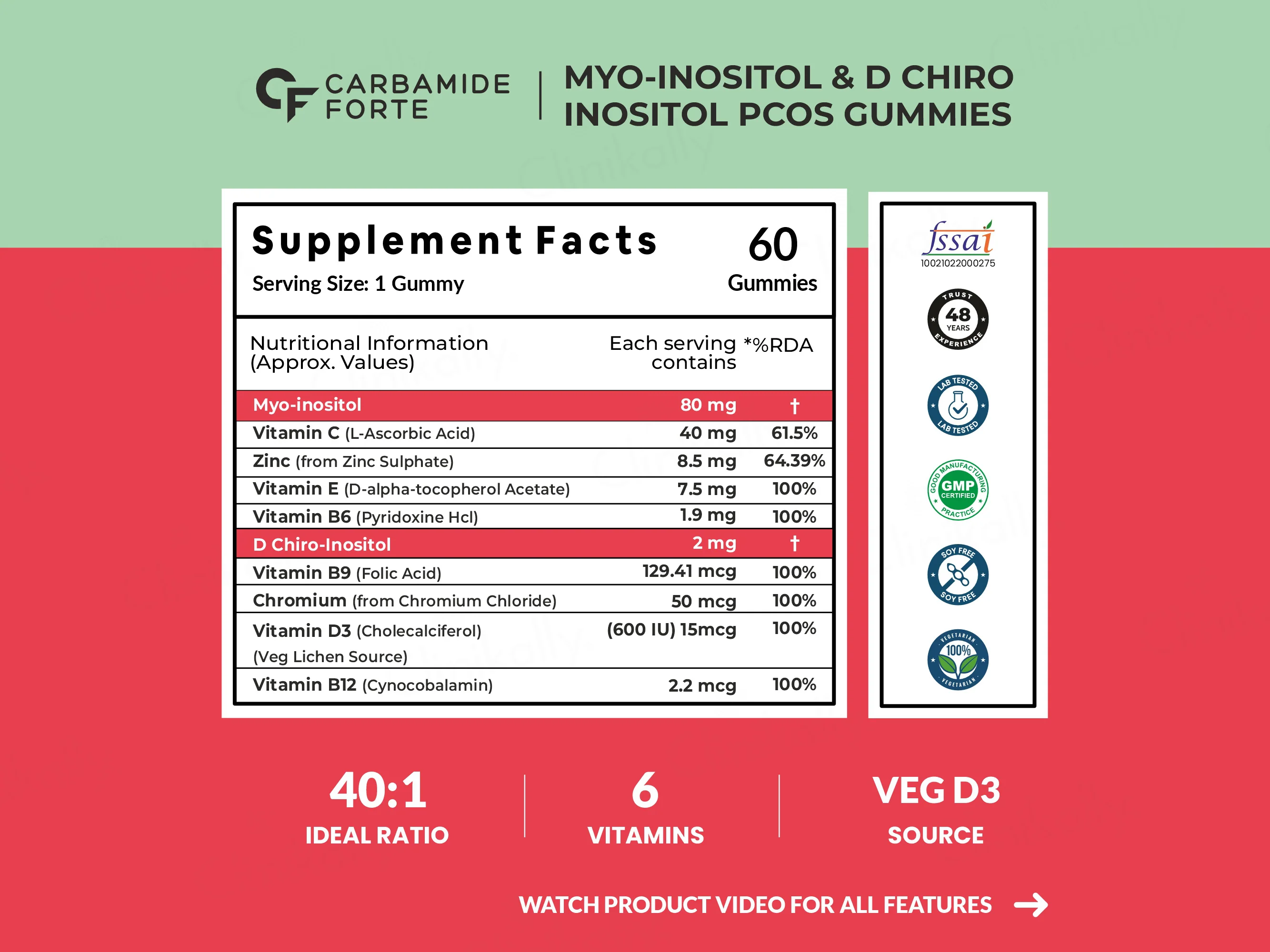 Carbamide Forte PCOS Nutraceutical Gummies (Orange Flavour) are scientifically crafted to address hormonal imbalances and metabolic challenges in women with PCOS. Each gummy delivers 80mg Myo-Inositol and 2mg D-Chiro-Inositol to improve insulin sensitivity and regulate menstrual cycles. Enriched with Vitamin D3 (from vegan lichen), Zinc, Chromium, and B-vitamins, these gummies combat acne, hair thinning, and fatigue. The sugar-free, orange-flavored formula supports ovarian health, antioxidant defense, and hormonal harmony. With 60 gummies per pack, it’s a tasty, convenient solution for women seeking natural PCOS management and holistic wellness.