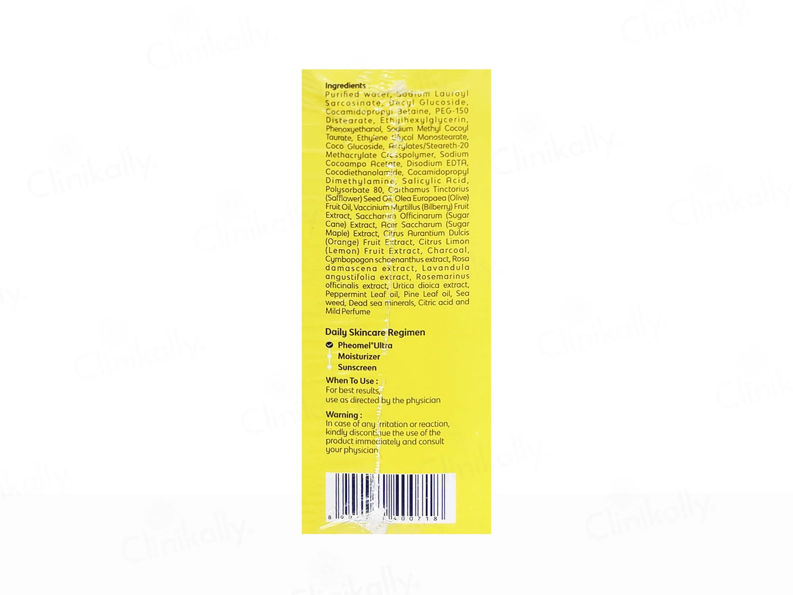 Pheomel Ultra Soap-Free Exfoliating & Invigorating Bodywash is a dermatologist-tested formula designed to brighten, purify, and rejuvenate dull skin. Powered by SalSphere Fruit AHA Complex, charcoal, Dead Sea minerals, and a potent botanical blend including peppermint leaf oil, pine leaf oil, seaweed, and citrus extracts, this bodywash gently exfoliates to minimize pores, reduce blemishes, and fade tanning. The invigorating texture removes impurities without stripping moisture, while its skin-friendly pH boosts radiance and smoothness. Perfect for daily cleansing, it leaves skin refreshed, polished, and naturally glowing.